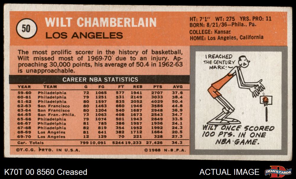 1970 Topps #50 Wilt Chamberlain 2 - GOOD