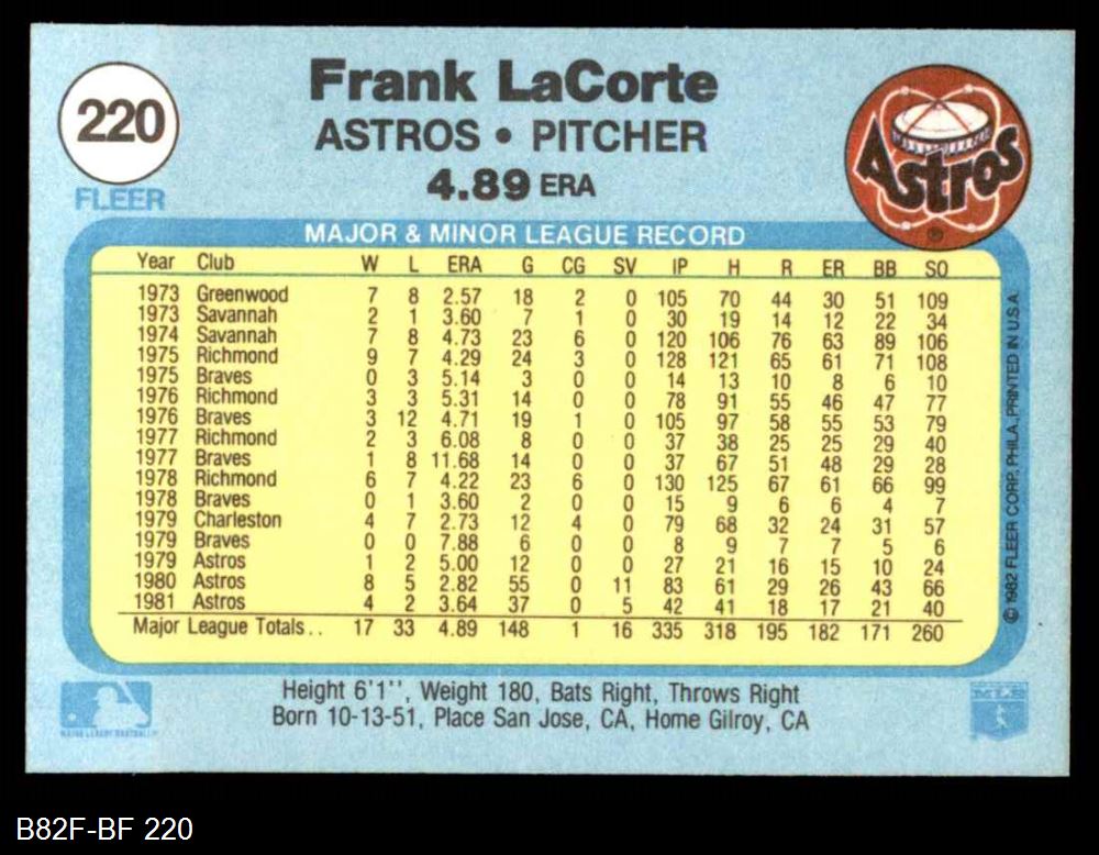 1982 Fleer #220 Frank LaCorte