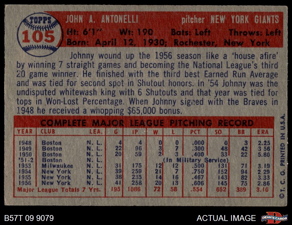 1957 Topps #105 Johnny Antonelli 3 - VG