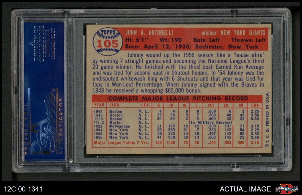 1957 Topps #105 Johnny Antonelli PSA 7 - NM
