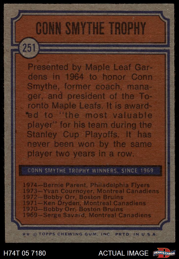 1974 Topps #251 - Bernie Parent Conn Smythe Throphy 5 - EX
