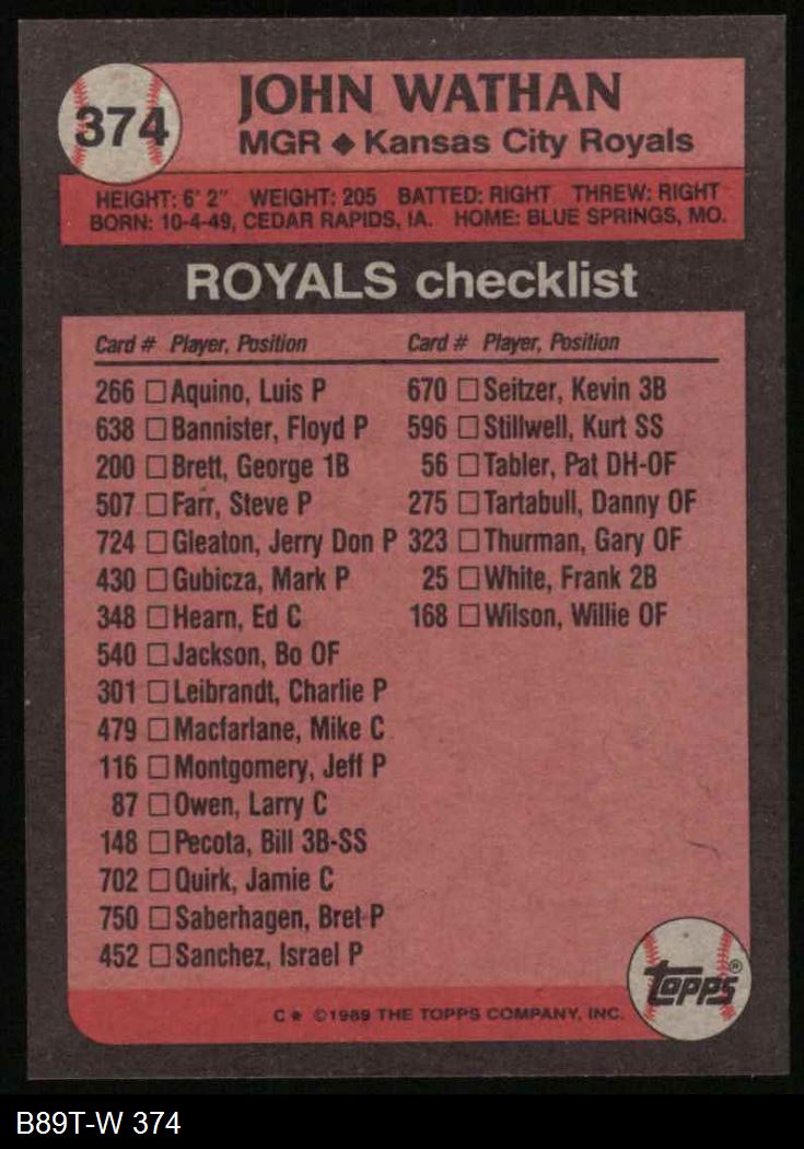1989 Topps #374 John Wathan