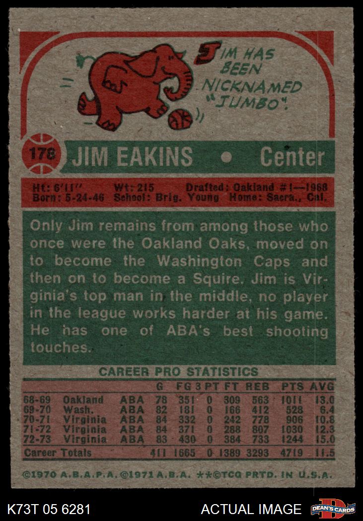 1973 Topps #178 Jim Eakins 6 - EX/MT