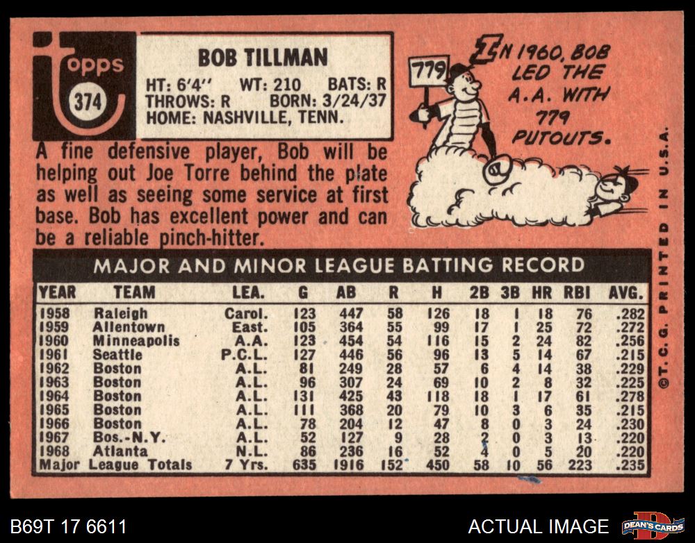 1969 Topps #374 Bob Tillman