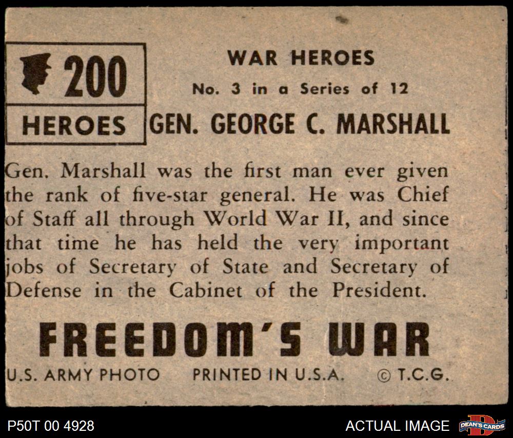 1950 Topps Freedoms War #200 General George C. Marshall 2 - GOOD