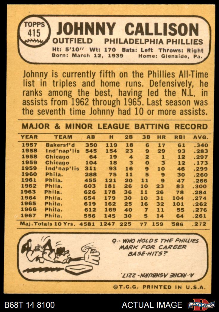 1968 Topps #415 Johnny Callison 6 - EX/MT