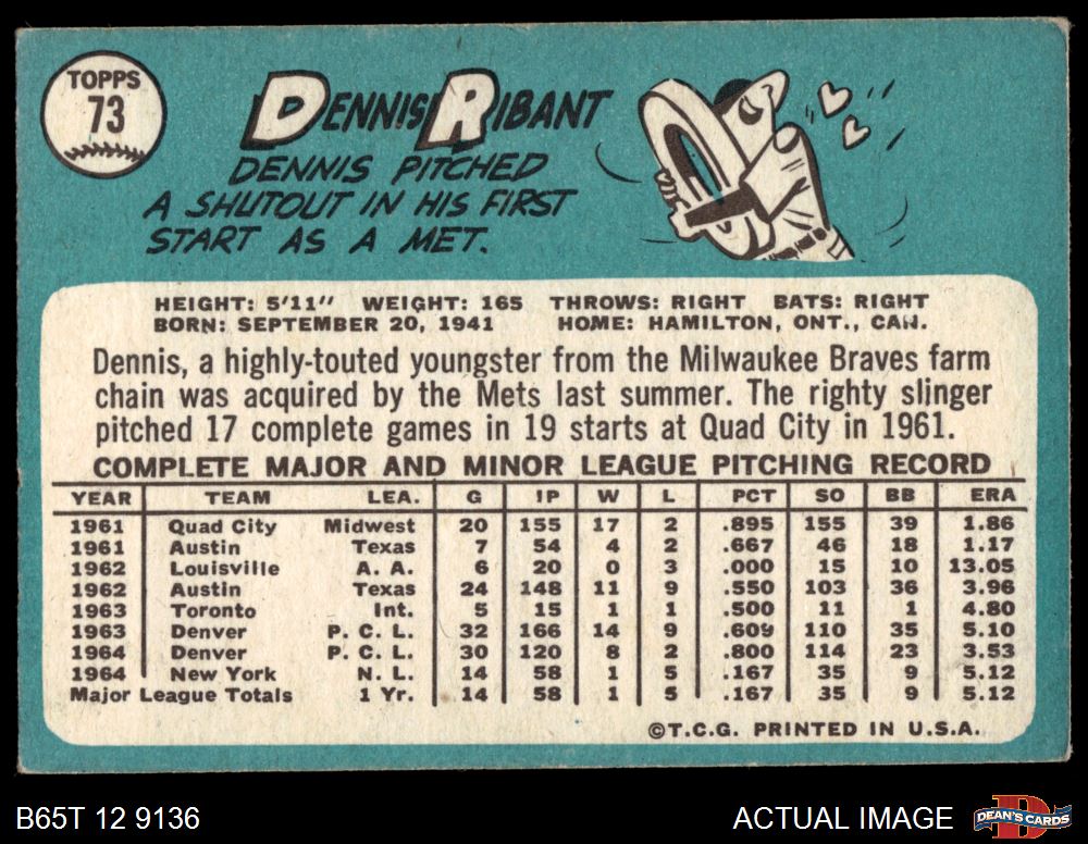 1965 Topps #73 Dennis Ribant 2 - GOOD