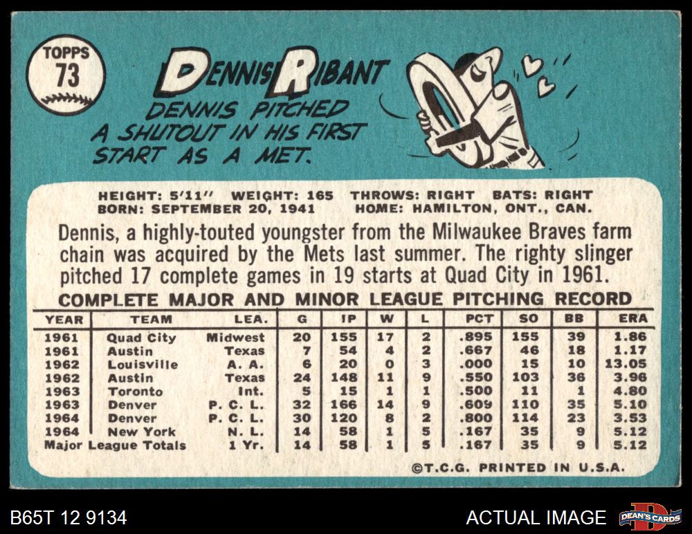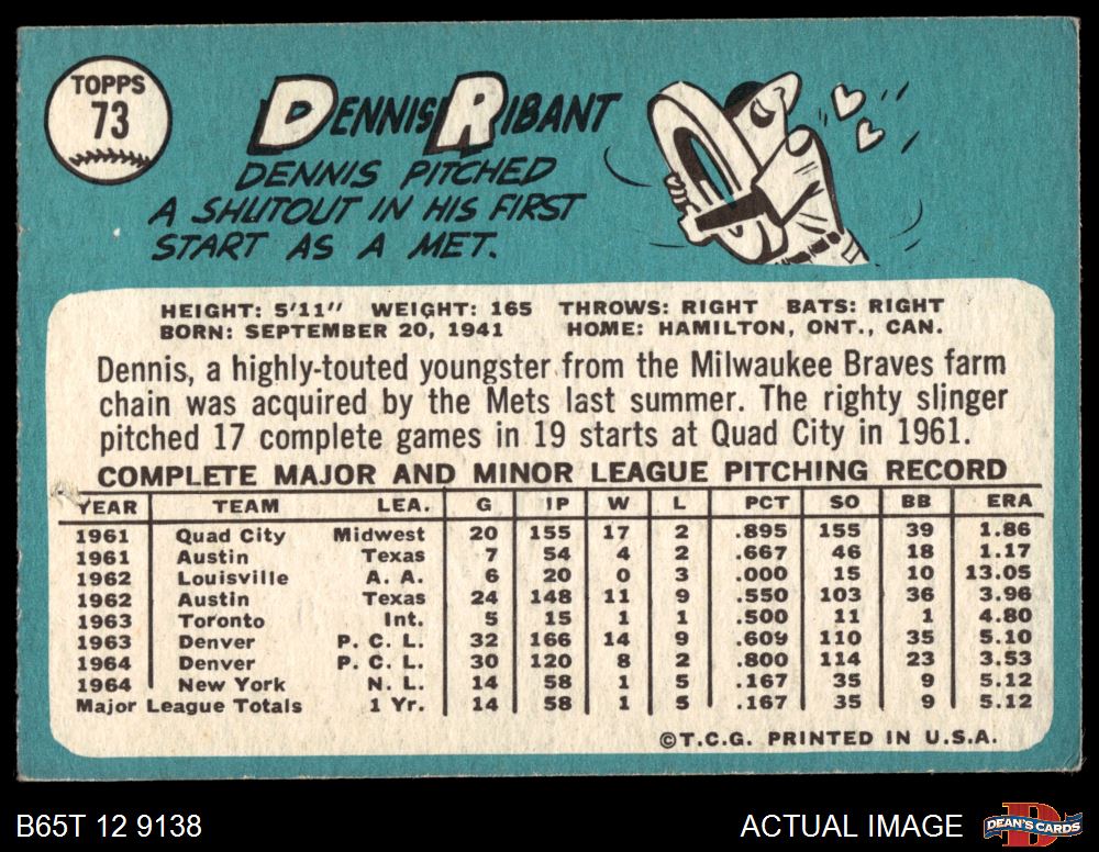 1965 Topps #73 Dennis Ribant 3.5 - VG+