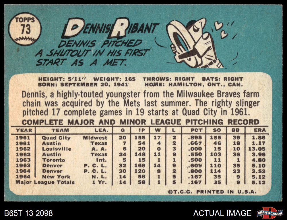 1965 Topps #73 Dennis Ribant 4 - VG/EX