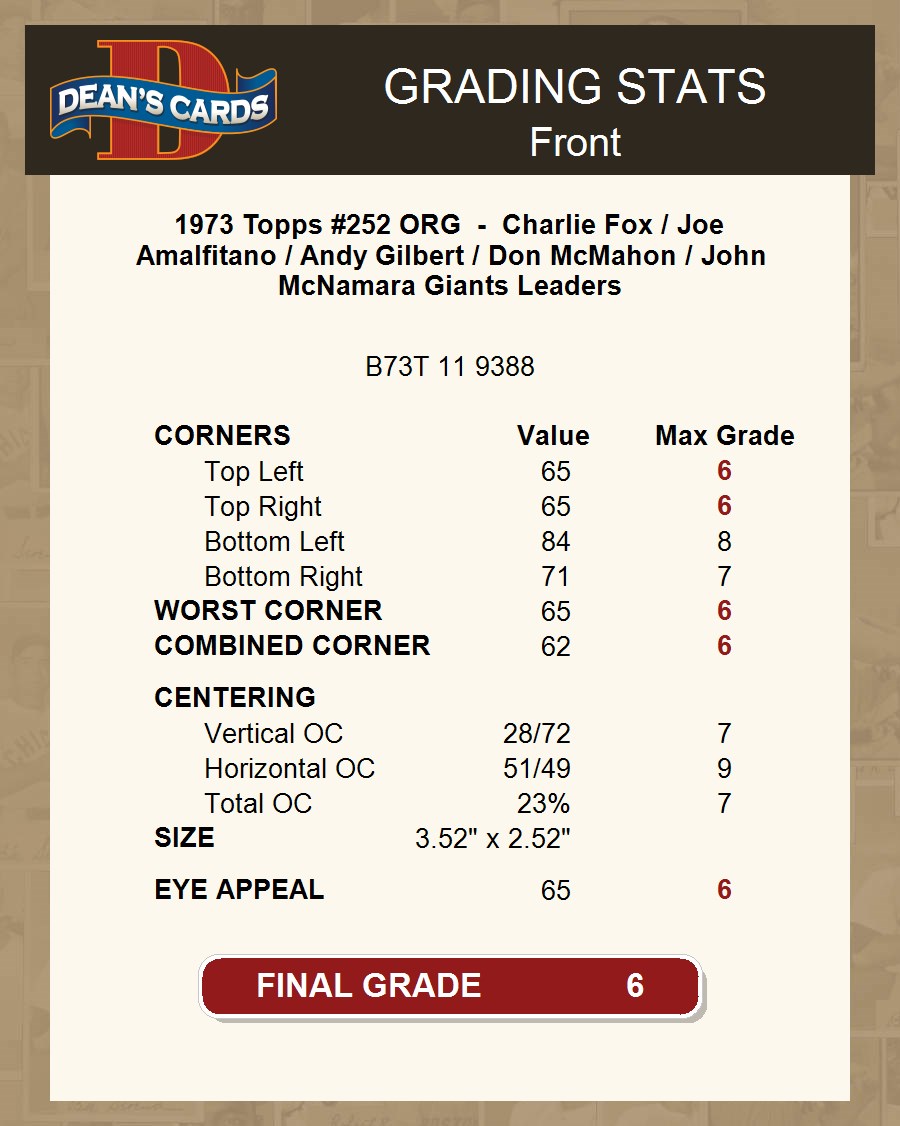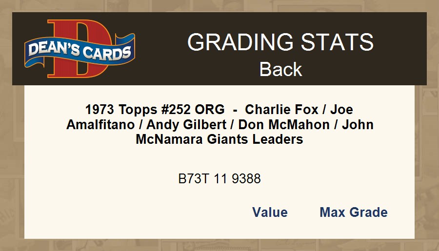 1973 Topps #252 ORG Giants Leaders