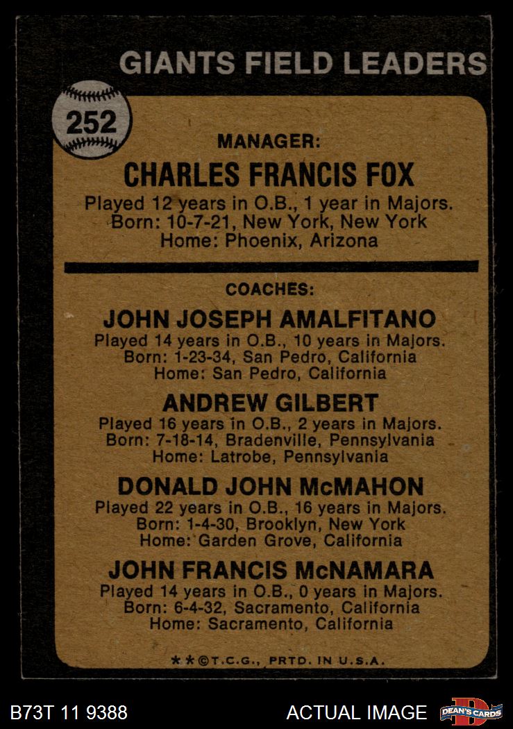 Charlie Fox / Joe Amalfitano / Andy Gilbert / Don McMahon / John McNamara (36 available)