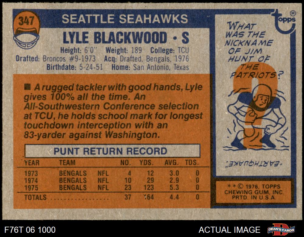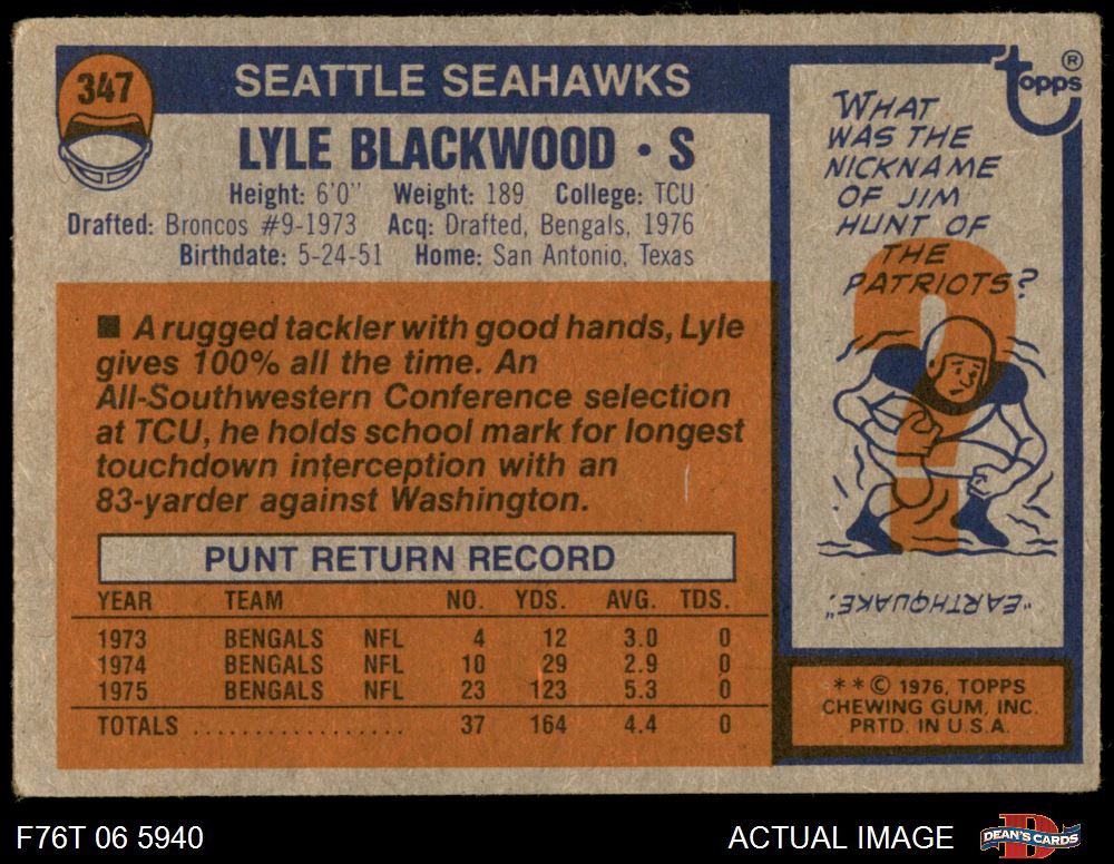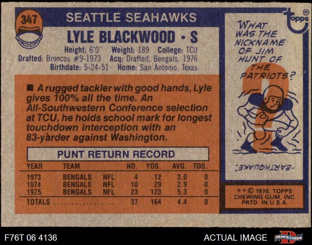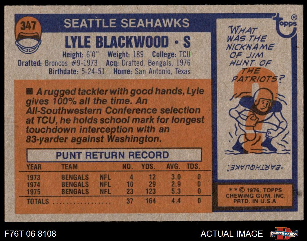 1976 Topps Football Cards (7,483 available)1976 Topps Seahawks (160 available)