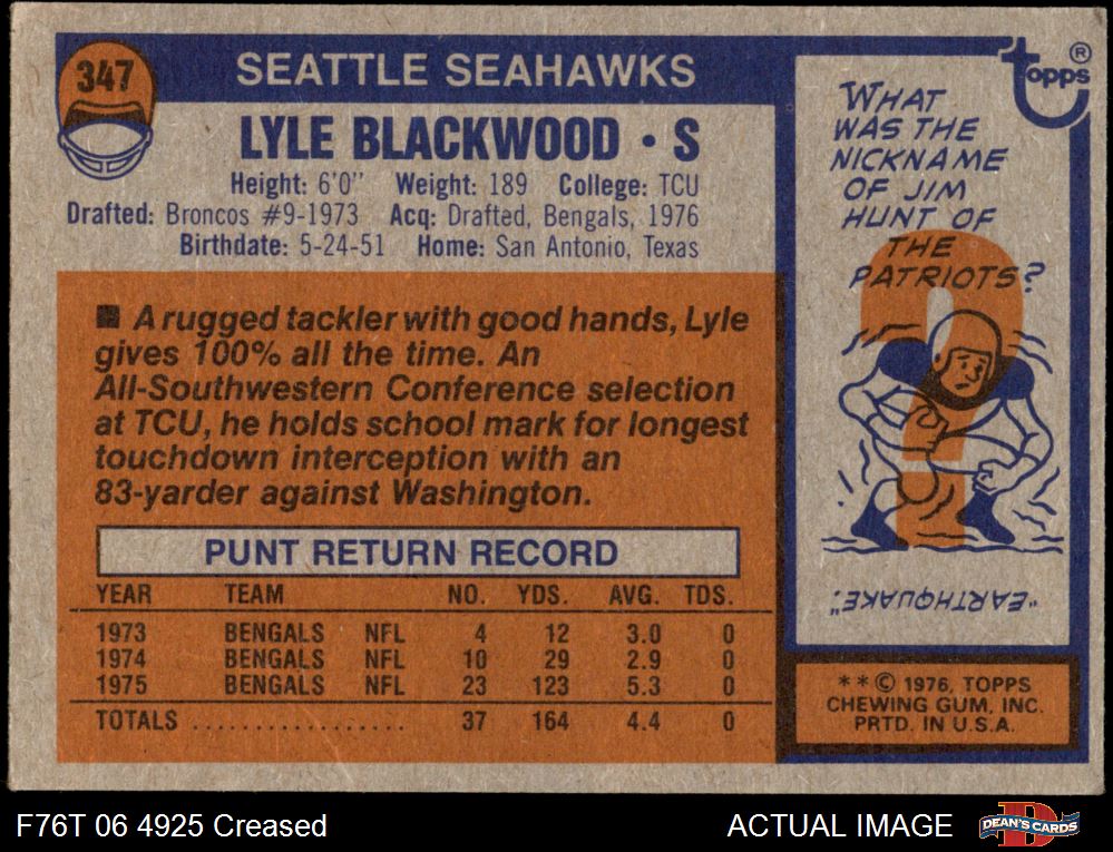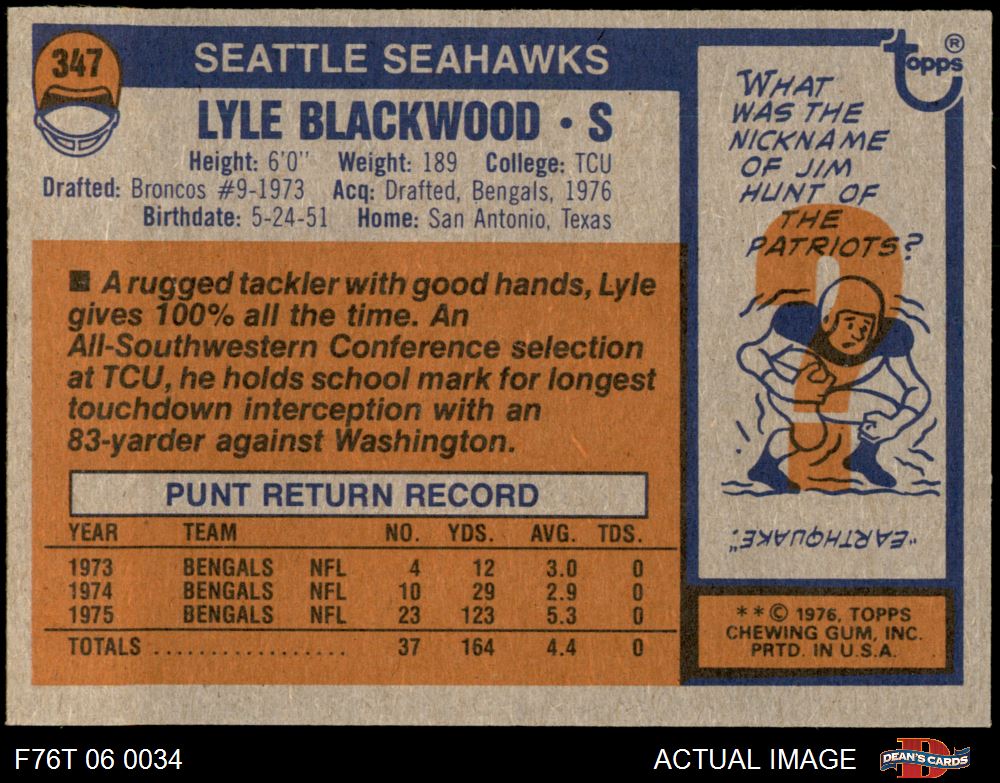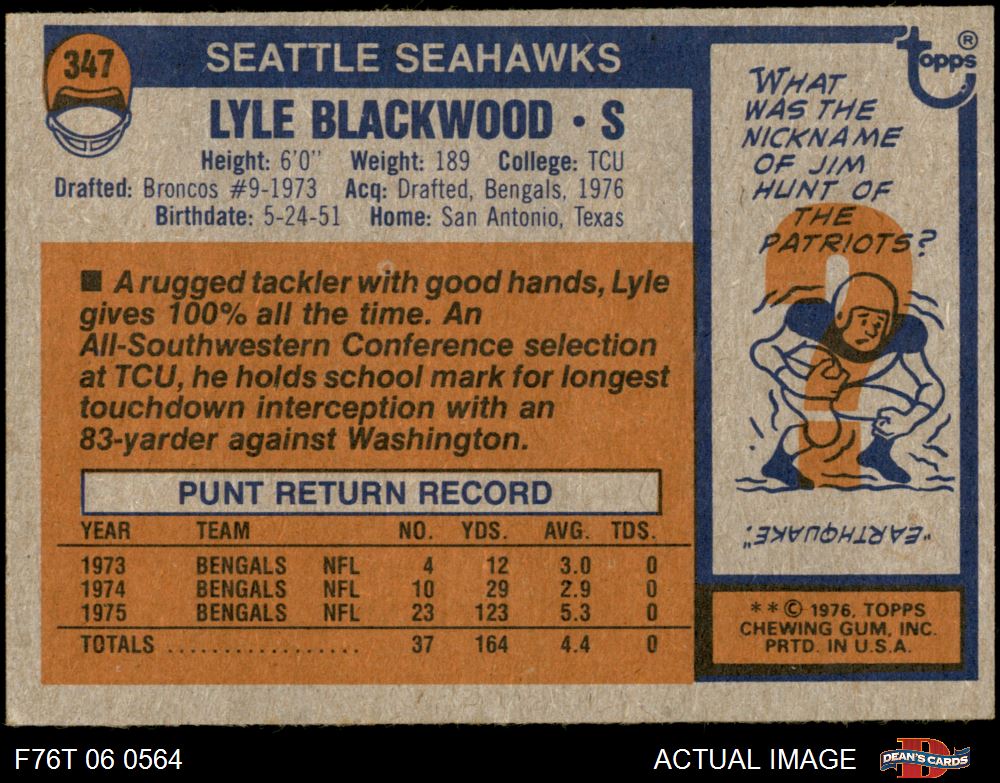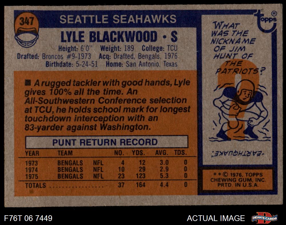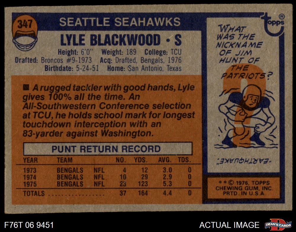 1976 Topps Football Cards (7,483 available)1976 Topps Seahawks (160 available)