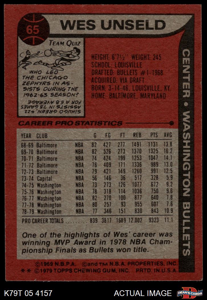 1979 Topps #65 Wes Unseld 4 - VG/EX