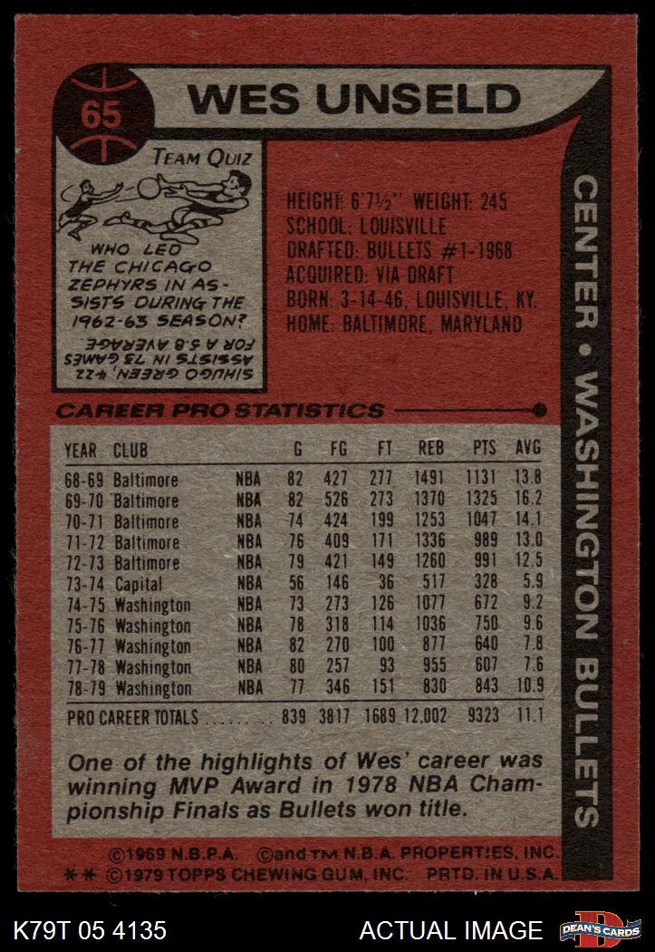 1979 Topps #65 Wes Unseld 7 - NM