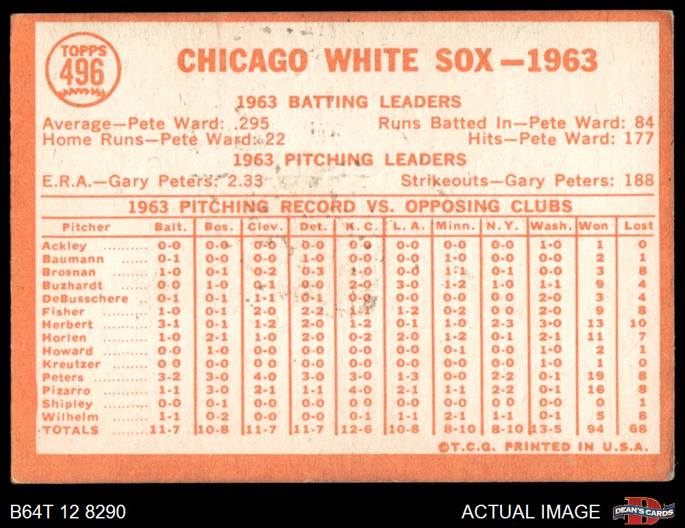 1964 Topps #496 White Sox Team 2 - GOOD