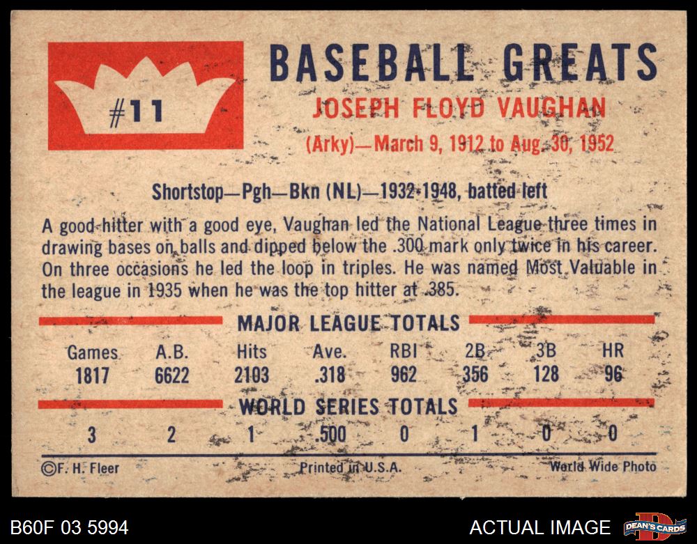 1960 Fleer #11 Arky Vaughan 2 - GOOD