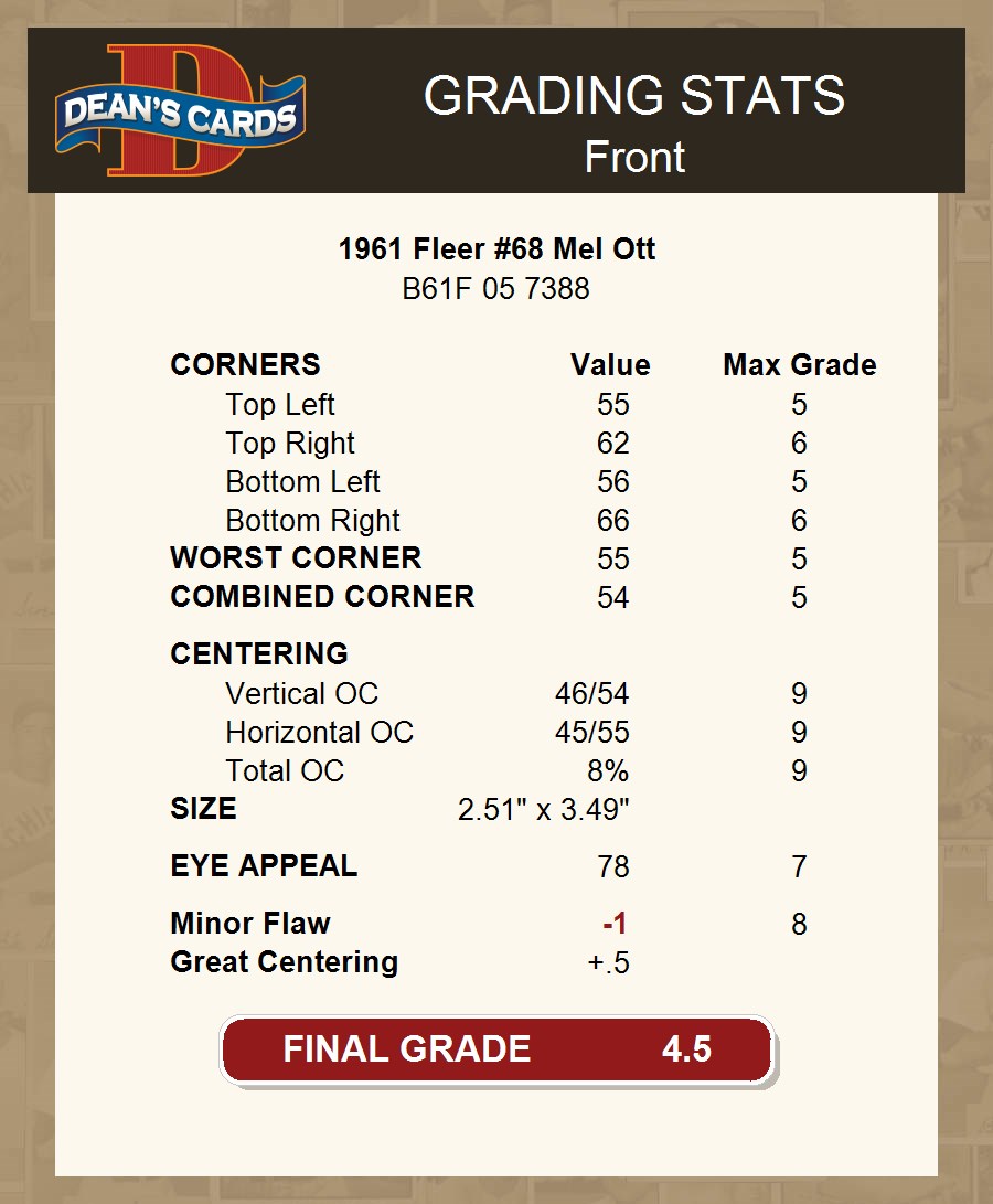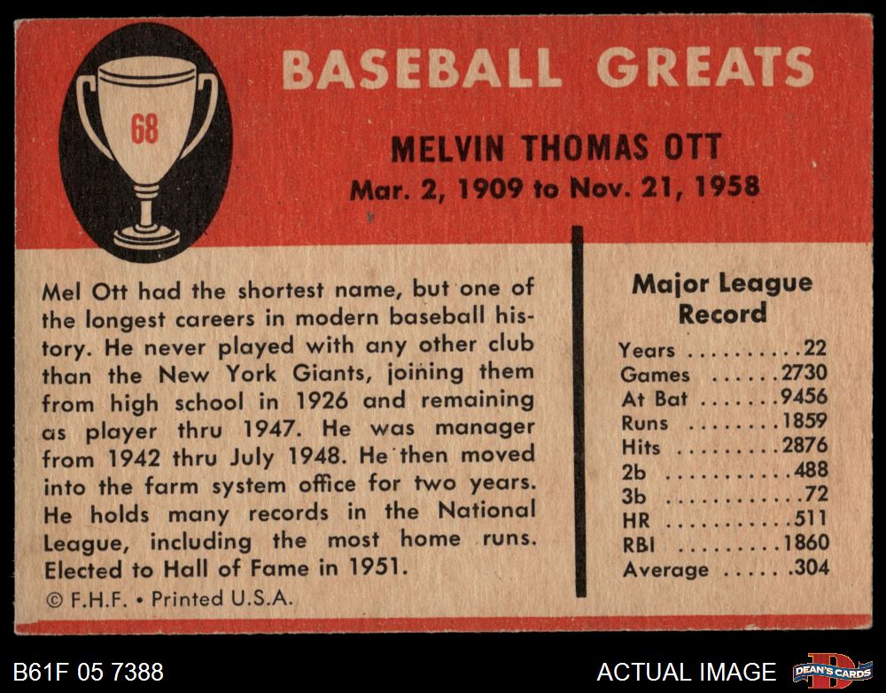 1961 Fleer #68 Mel Ott