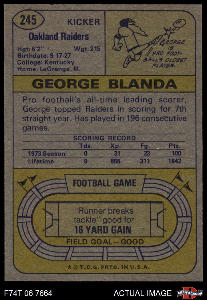 1974 Topps #245 George Blanda