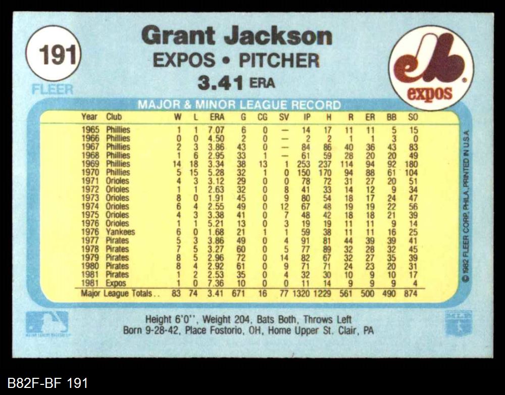 1982 Fleer #191 Grant Jackson