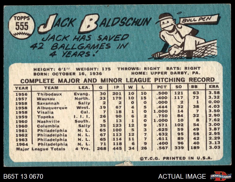 1965 Topps #555 Jack Baldschun 3 - VG