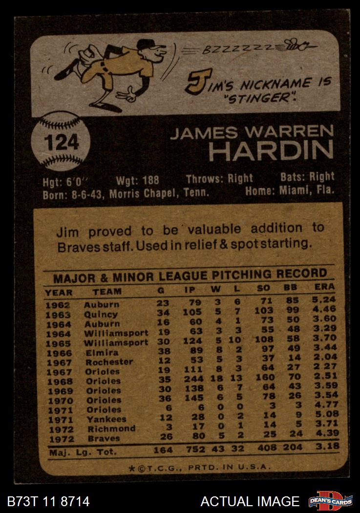 1973 Topps #124 Jim Hardin