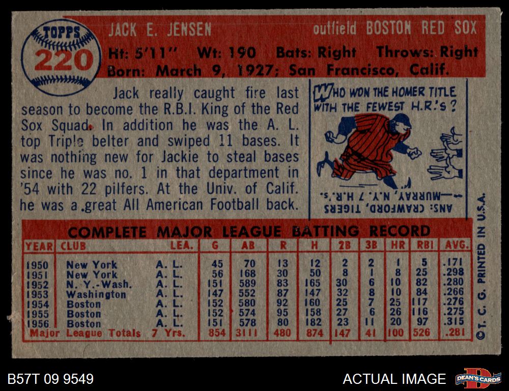 1957 Topps #220 Jackie Jensen