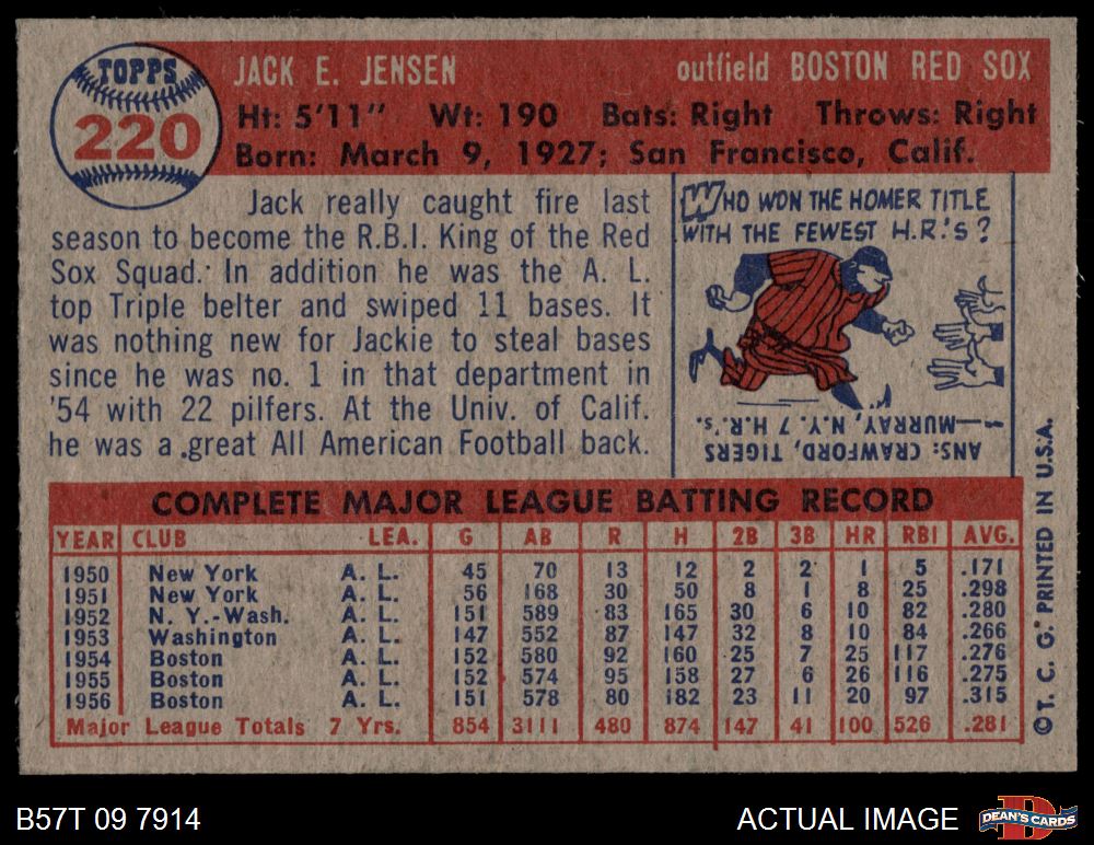 1957 Topps #220 Jackie Jensen 8 - NM/MT