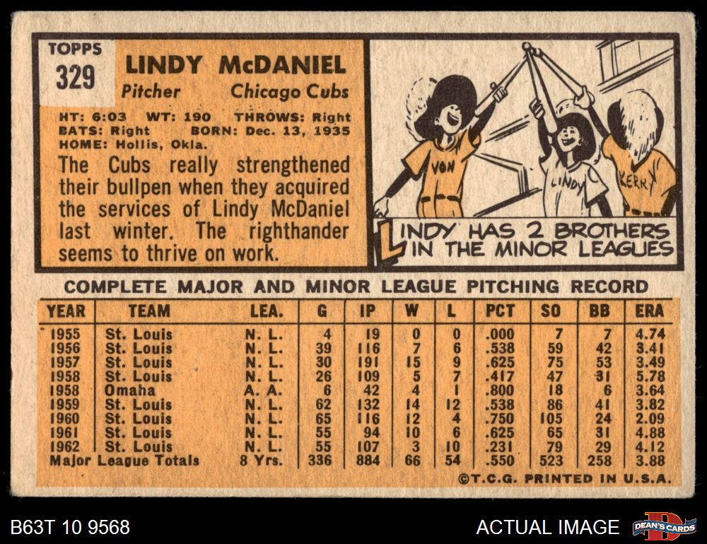 1963 Topps #329 Lindy McDaniel 2.5 - GD+