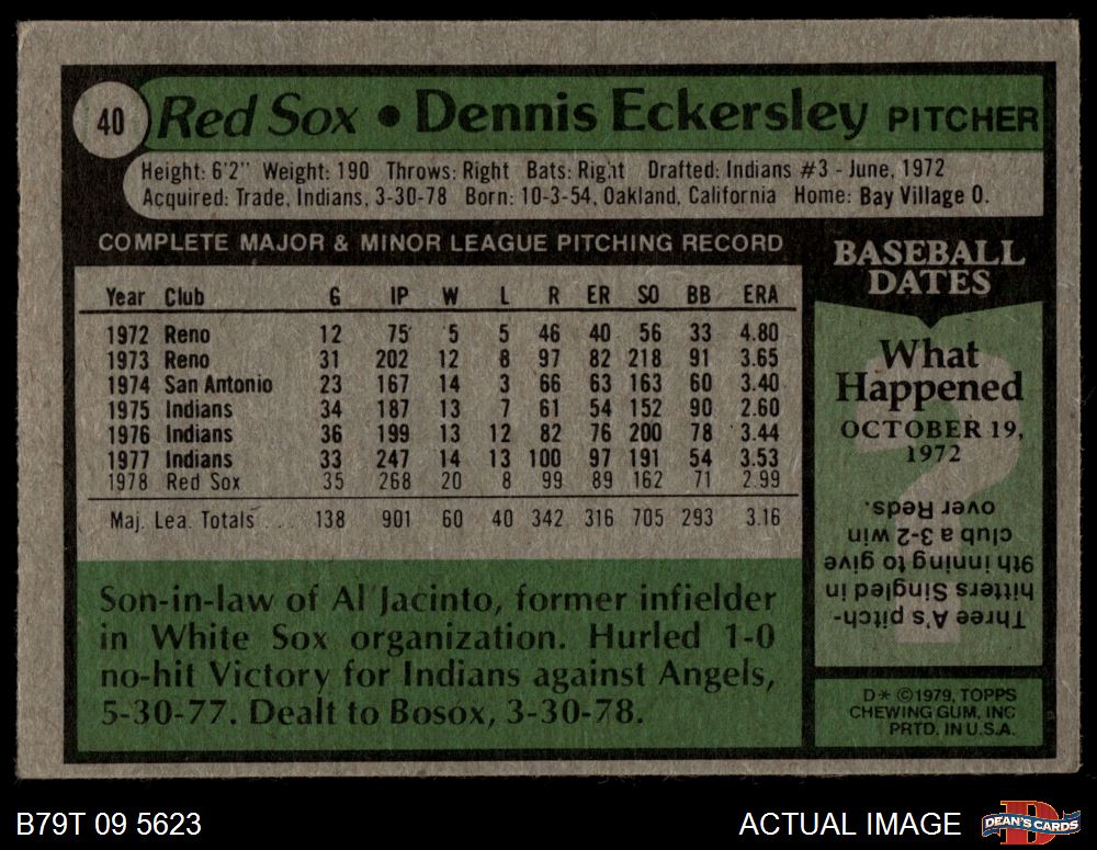 1979 Topps #40 Dennis Eckersley 2.5 - GD+