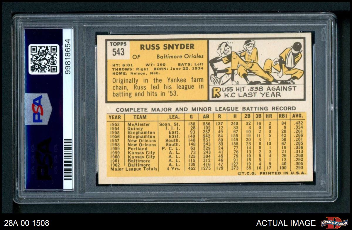1963 Topps #543 Russ Snyder PSA 7 - NM