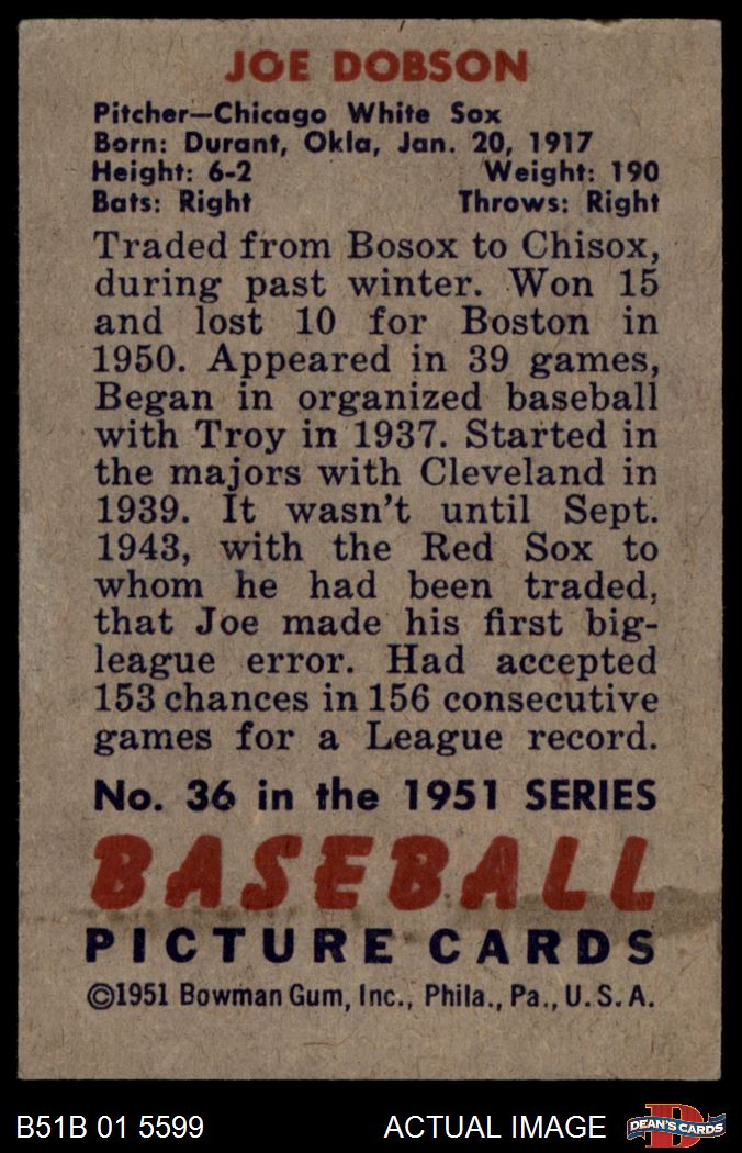 1951 Bowman #36 Joe Dobson 2 - GOOD