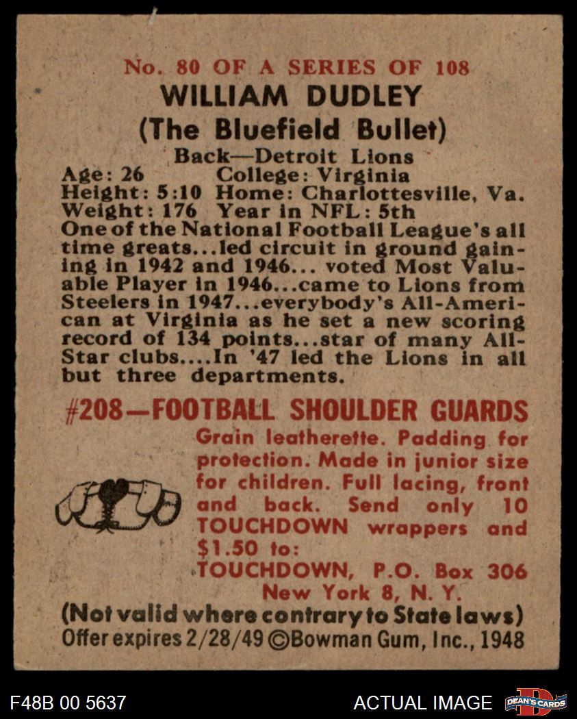 1948 Bowman #80 William Dudley 5 - EX
