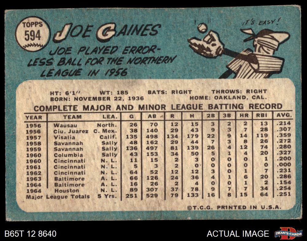 1965 Topps #594 Joe Gaines