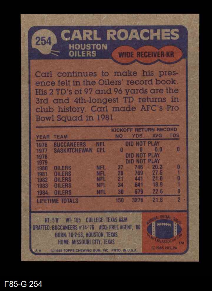 1985 Topps Football Cards (1,086 available)1985 Topps Oilers (46 available)