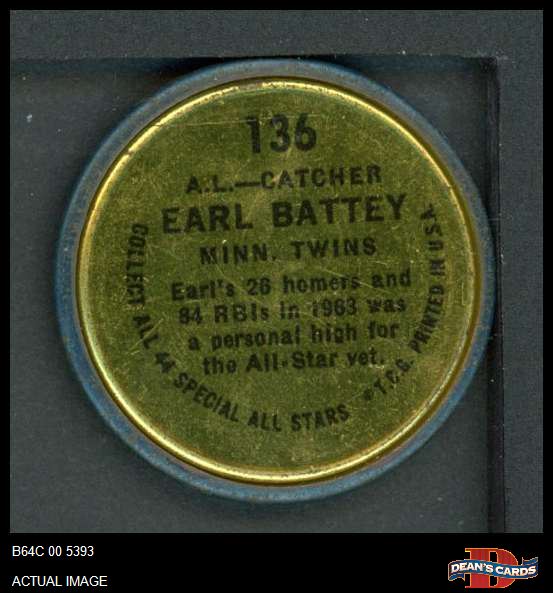 1964 Topps Coins #136 - Earl Battey All-Star 1.5 - FAIR