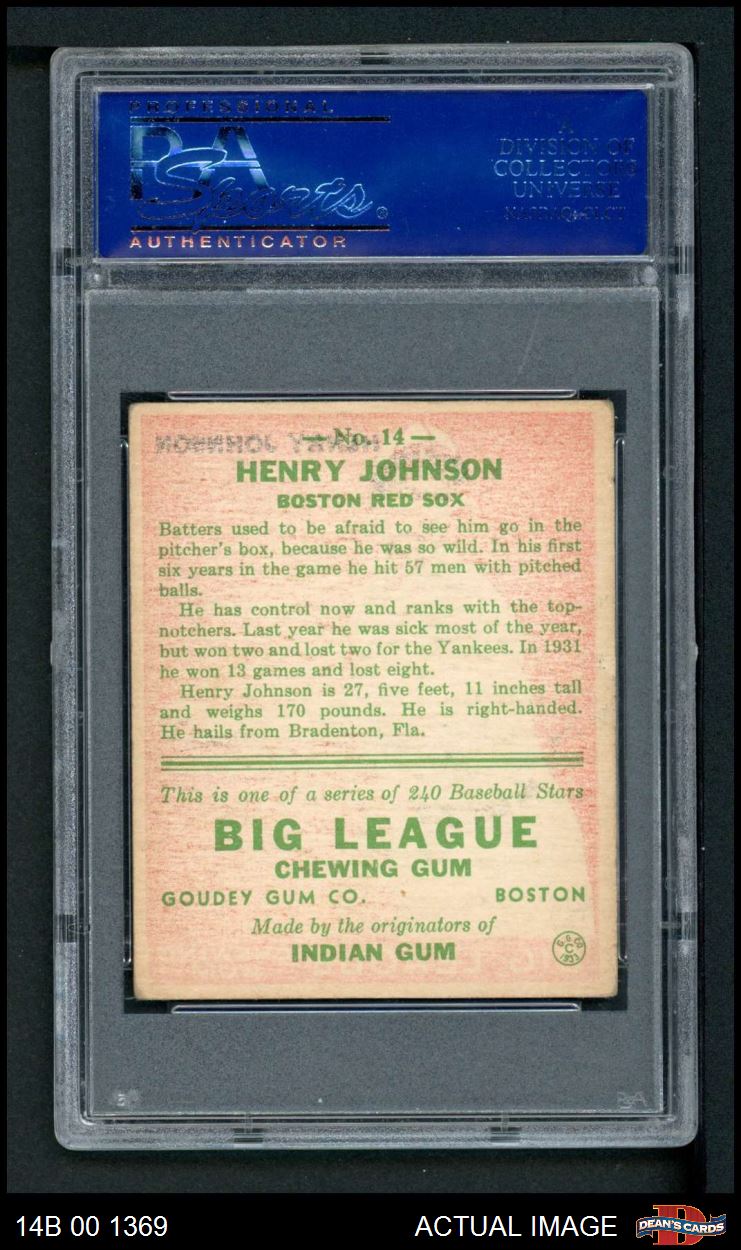 1933 Goudey #14 Henry Johnson PSA 4 - VG/EX