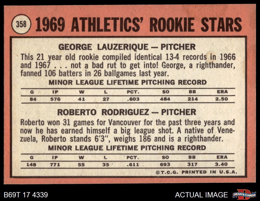 1969 1969 #358 - George Lauzerique / Roberto Rodriguez A's Rookies 7 - NM