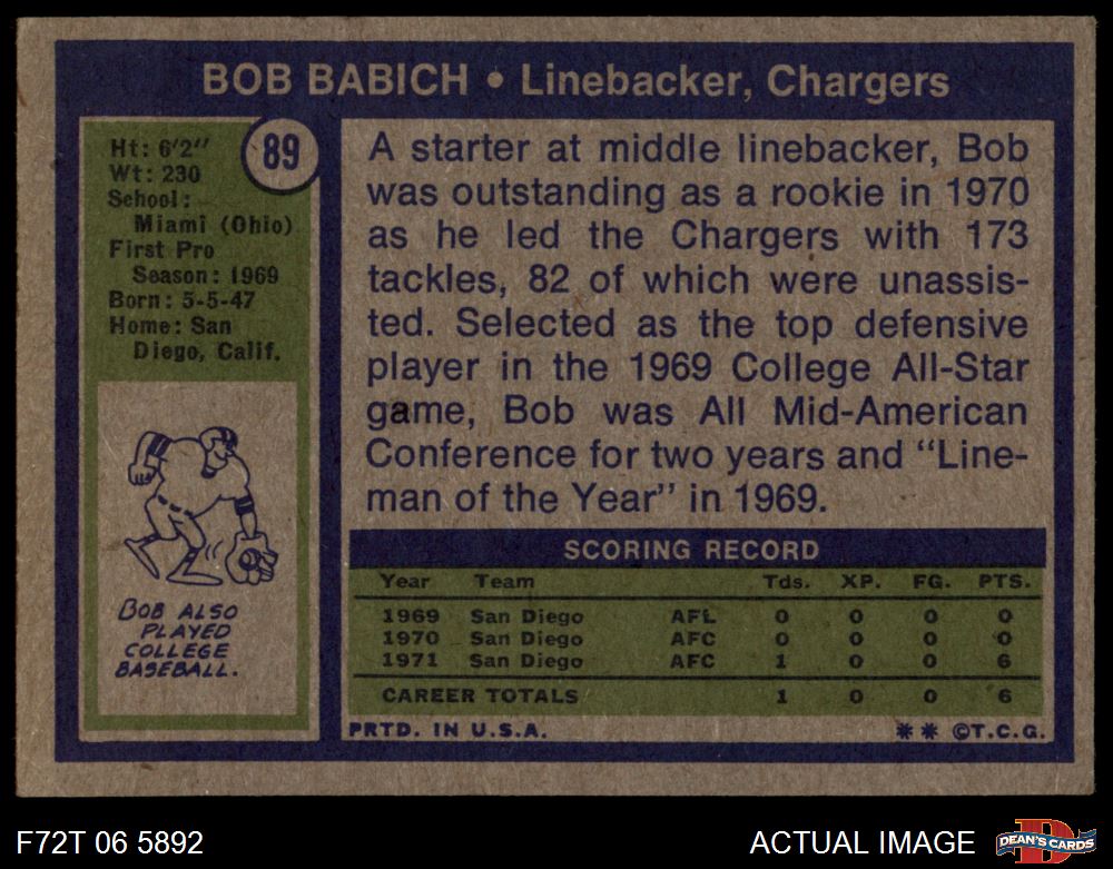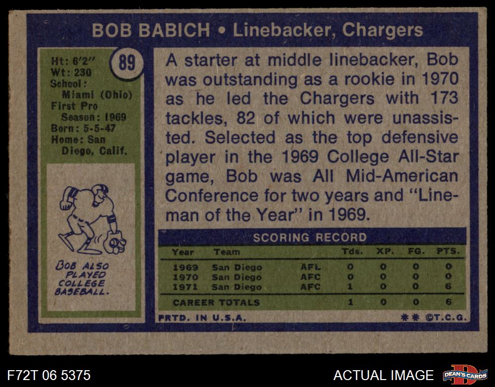 1972 Topps #89 Bob Babich 4 - VG/EX