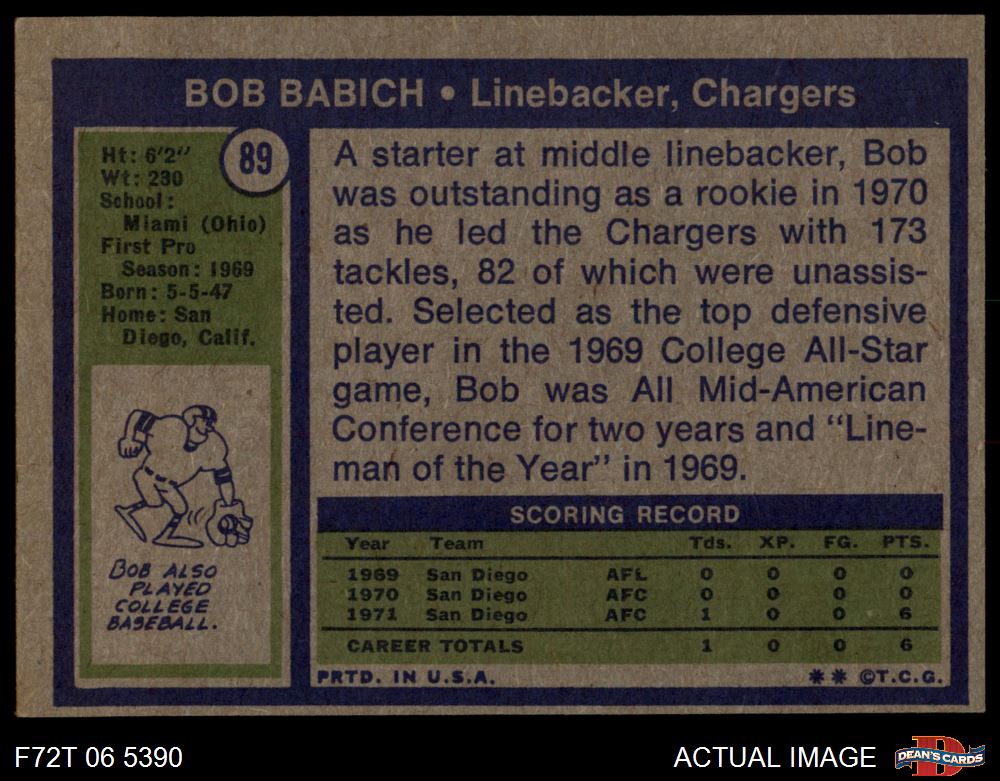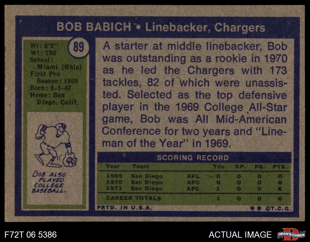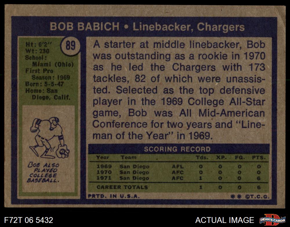 1972 Topps #89 Bob Babich 5 - EX