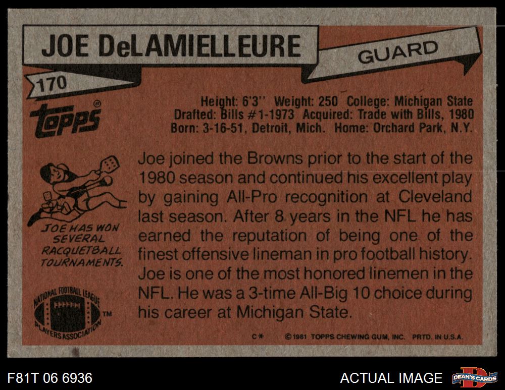 1981 Topps #170 Joe DeLamielleure