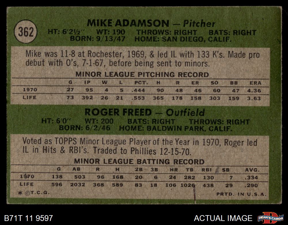 1971 Topps #362 - Mike Adamson / Roger Freed Orioles Rookies 3 - VG