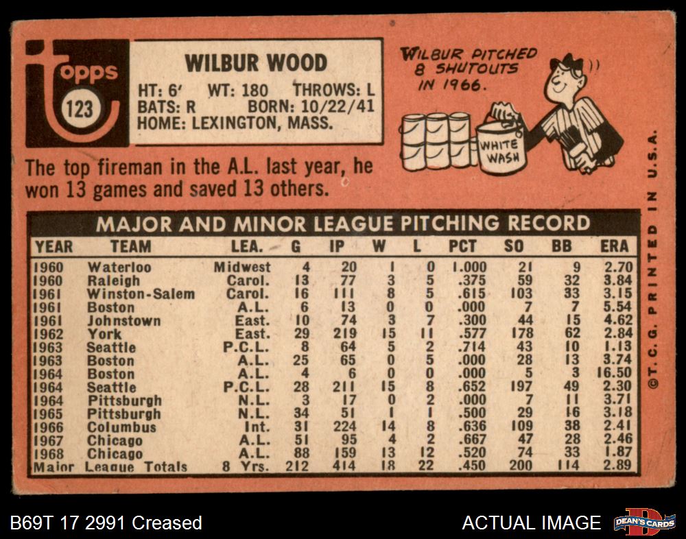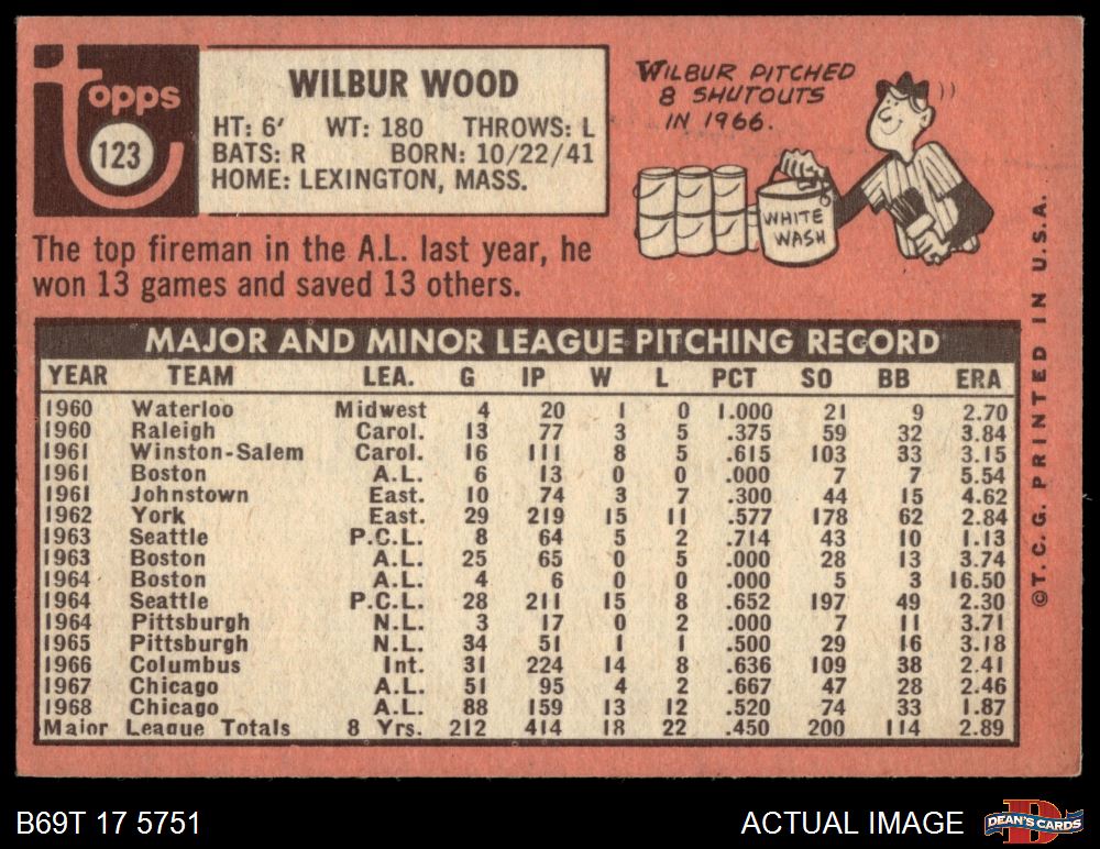 1969 Topps #123 Wilbur Wood 2 - GOOD