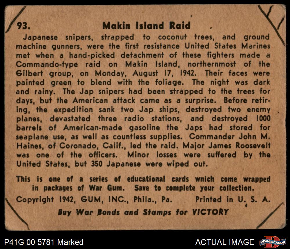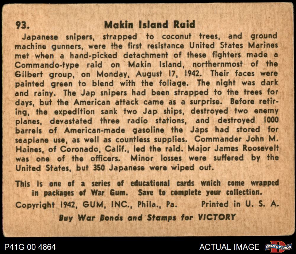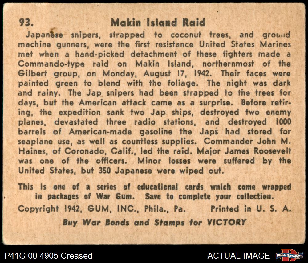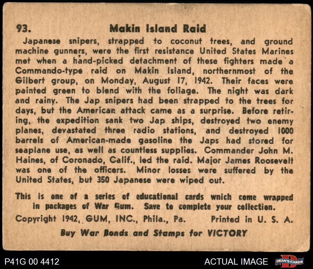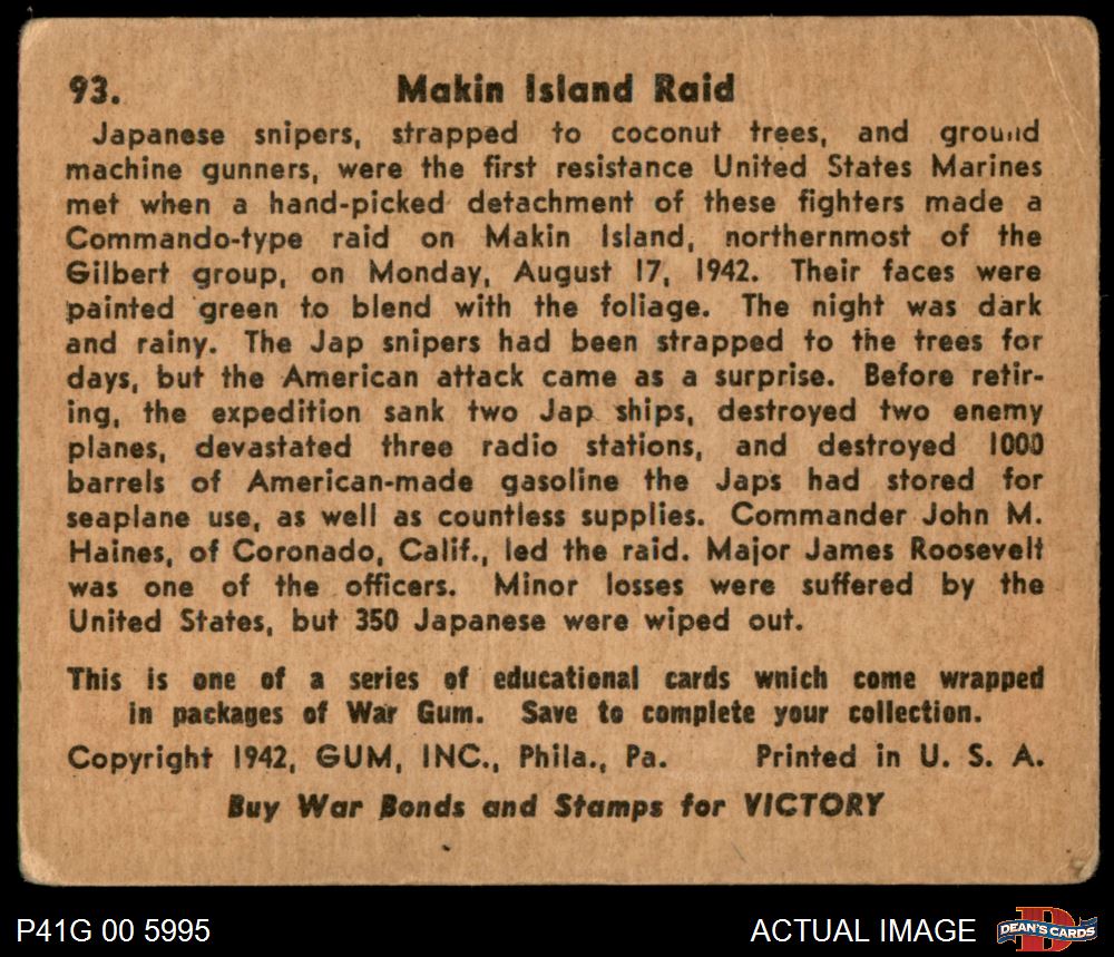1941 War Gum #93  Makin Island Raid Front Thumbnail