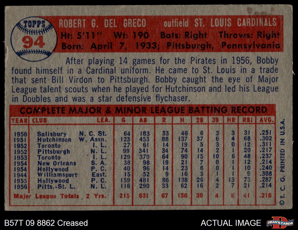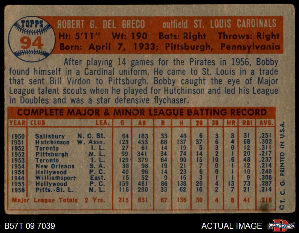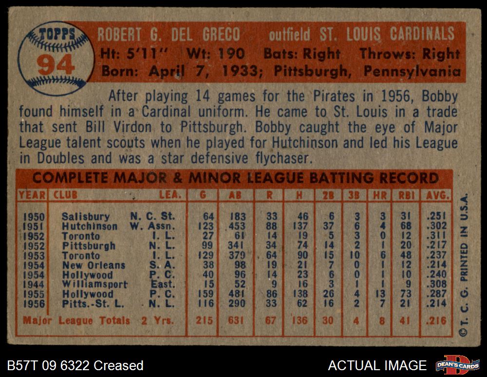 1957 Topps #94 Bobby Del Greco 2 - GOOD