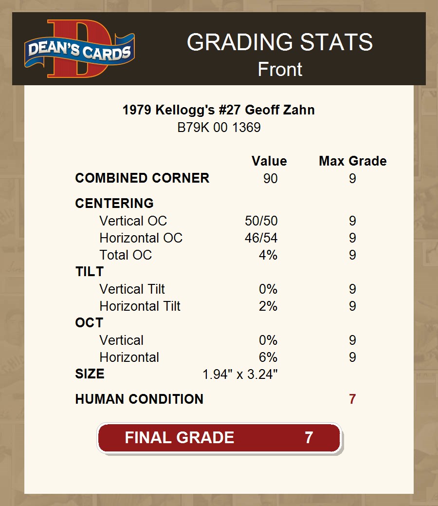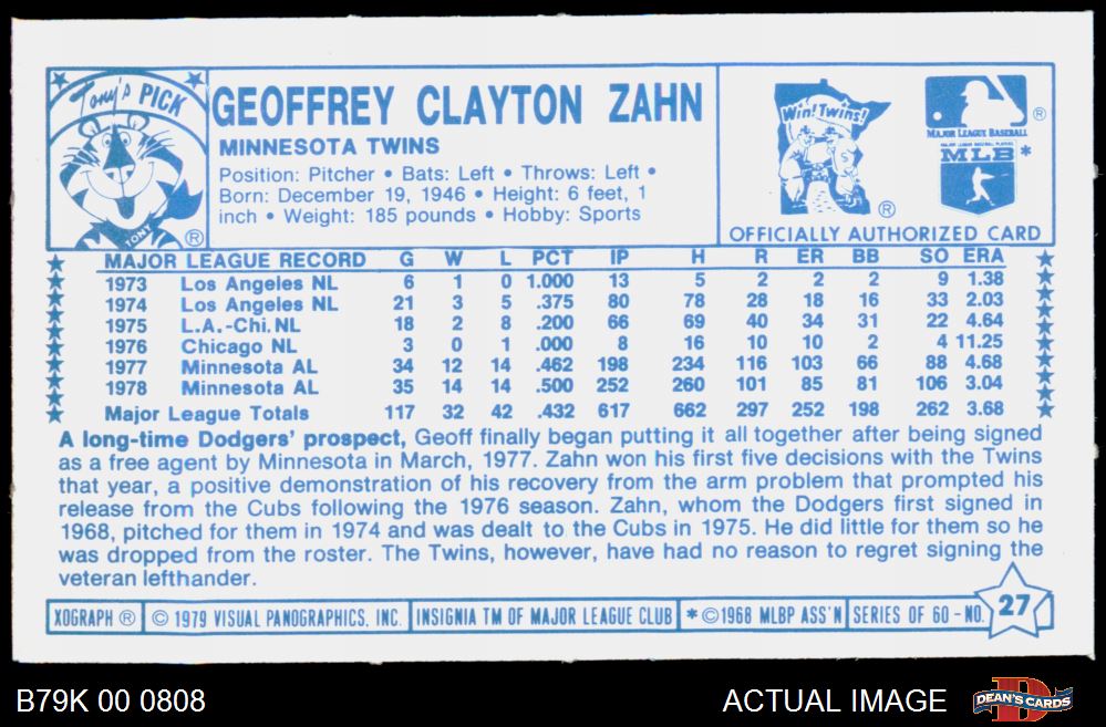 1979 Kellogg's #27 Geoff Zahn 7 - NM