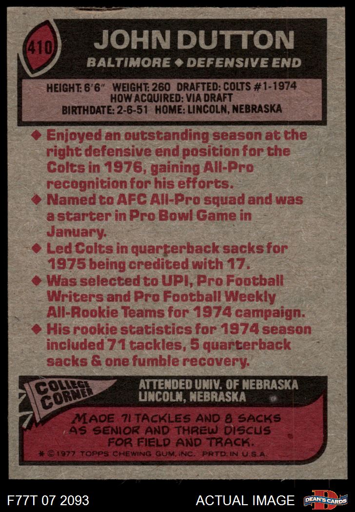 1977 Topps #410 John Dutton
