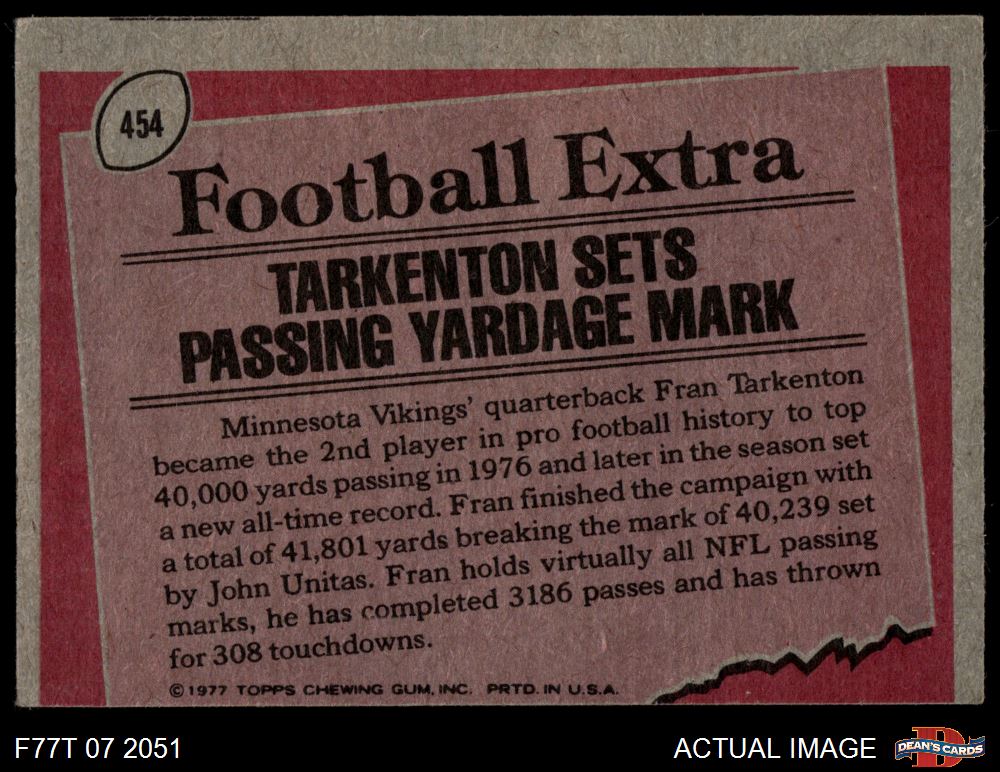 1977 Topps #454 - Fran Tarkenton Record Breaker 2 - GOOD