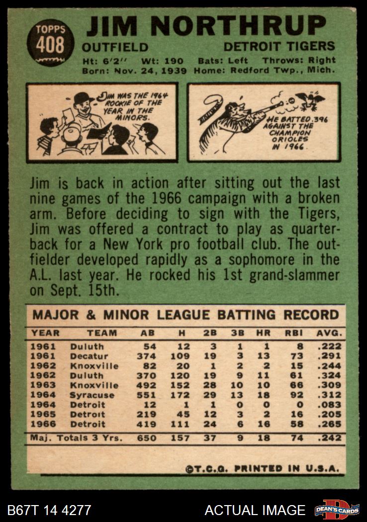 1967 Topps #408 Jim Northrup 3.5 - VG+
