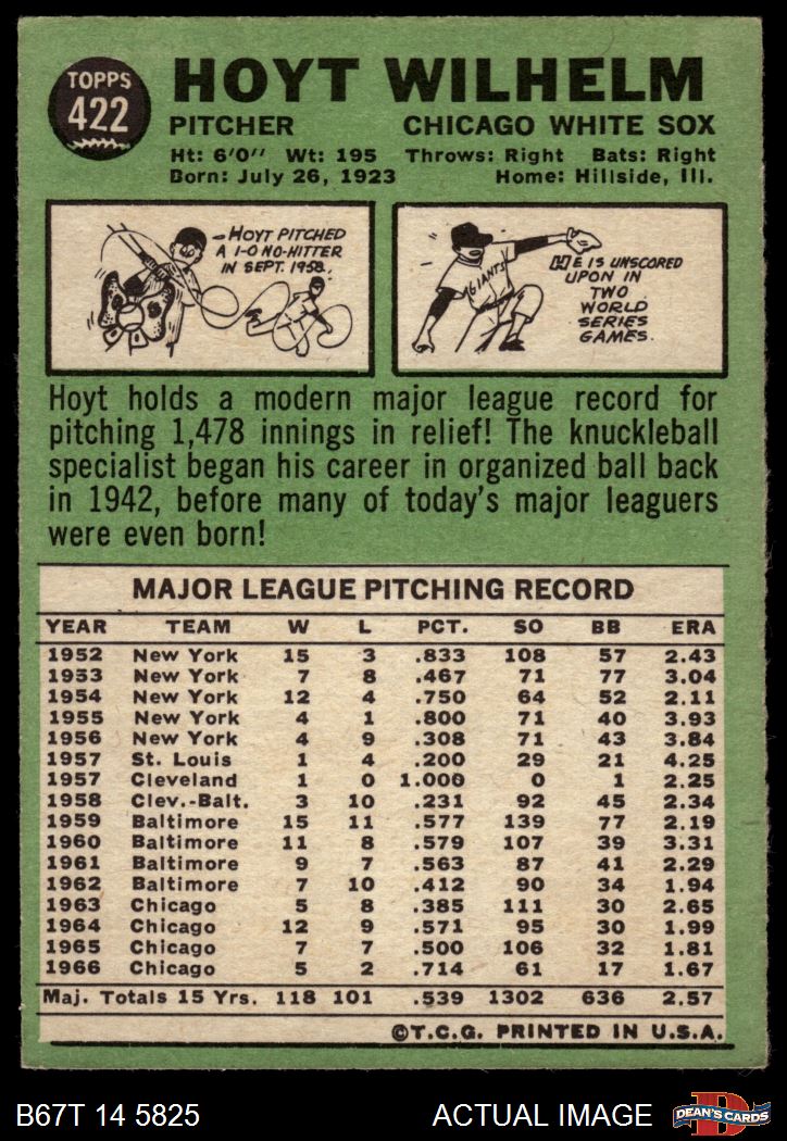 1967 Topps #422 Hoyt Wilhelm